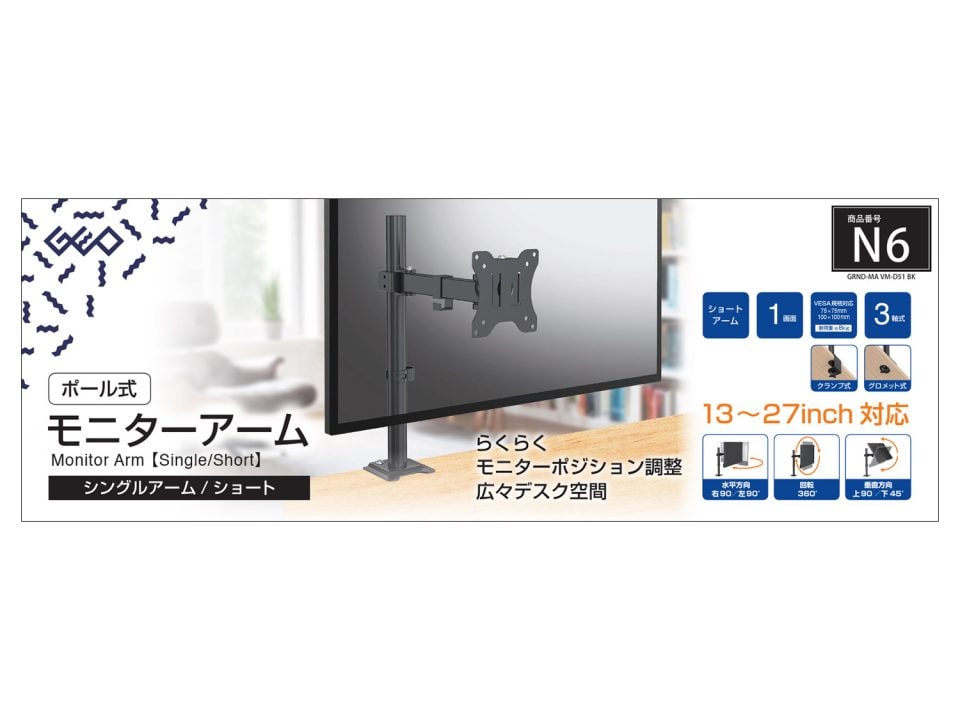 ポール式モニターアーム”GRND-MA VM-D51”を発売 ゲオ限定「ポール式モニターアーム(GRND-MA…