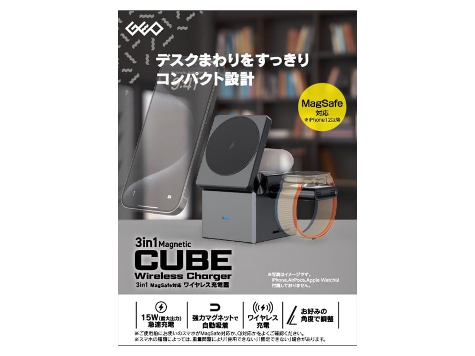 3in1 MagSafe対応 ワイヤレス充電器 CUBE”GRFD-MAC3 C2”を発売 ゲオ限定「3in1…