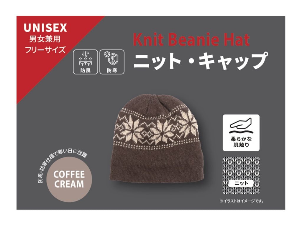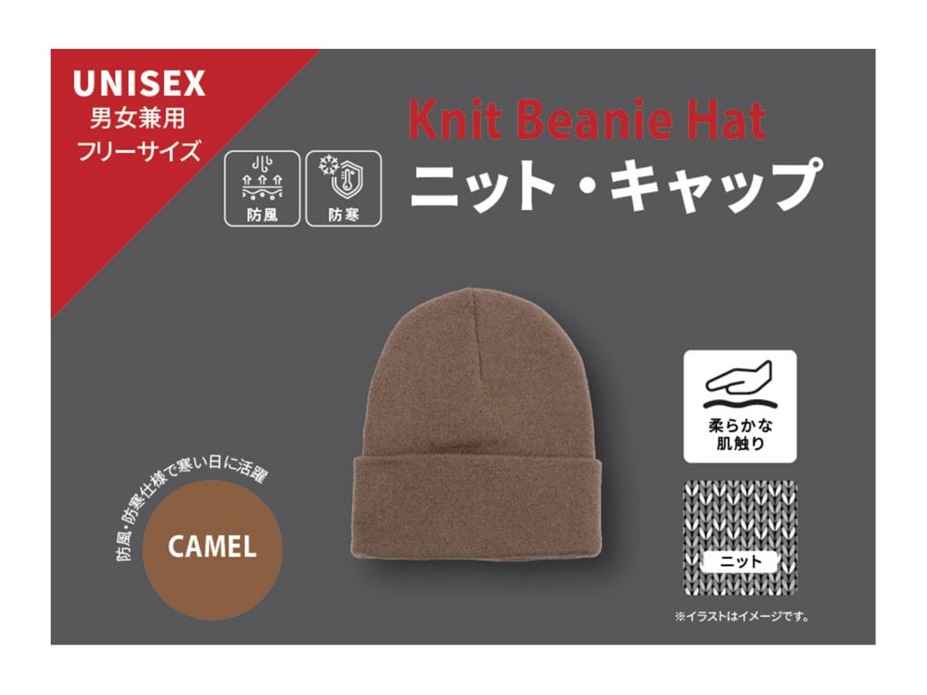 今回新たに販売するゲオ限定商品の「ニットキャップ」4種は、柔らかな肌触りのニットキャップです。防風・防寒仕様で通勤や通学、アウトドアなど寒い日に活躍します。