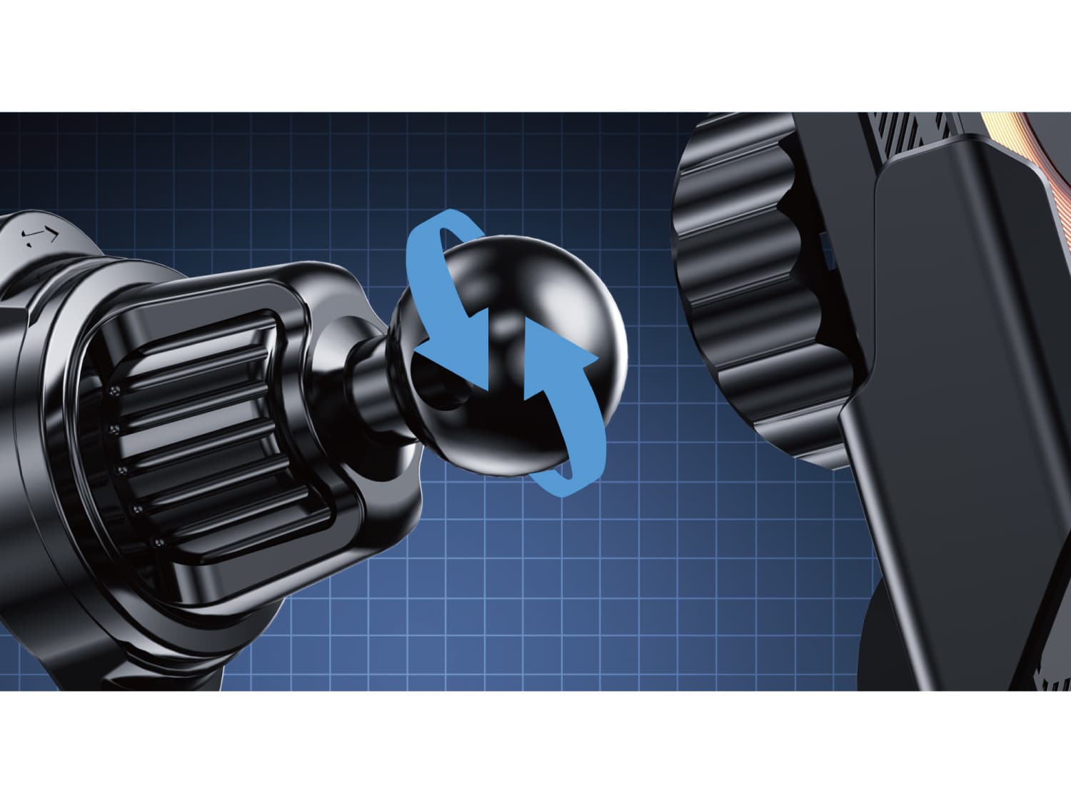 ボールジョイント採用で360°回転するため、見やすく使いやすいポジションに絶妙な角度まで調節可能です。