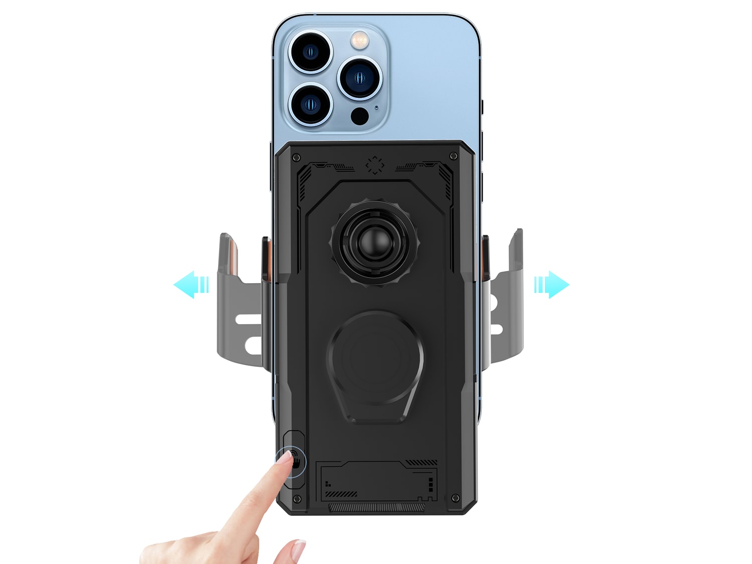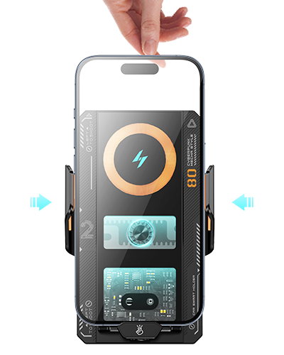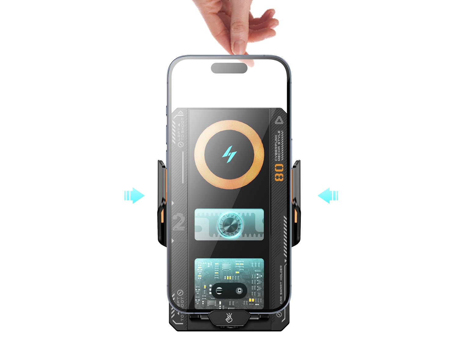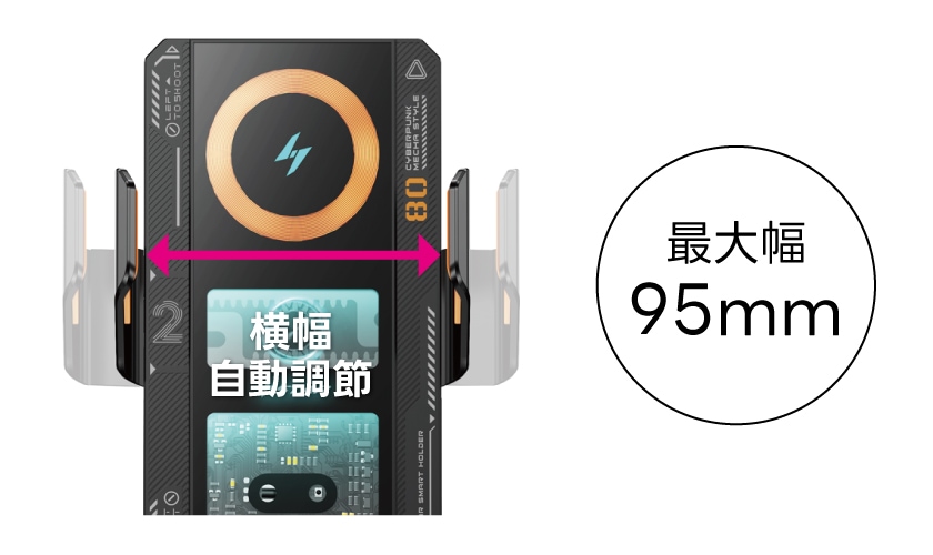センサーにスマートフォンを近づけると、スマートフォンのサイズを検知して自動で開閉するので、片手で簡単に操作することができます。4.7~6.9インチまでのスマートフォンに対応しています(※自社調べ)。