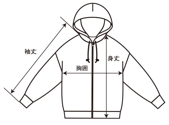 サイズ(約) M L LL 身長 165~175cm 175~185cm 175~185cm 胸囲 88~96cm 96~104cm 104~112cm 身丈 68cm 70cm 72cm 袖丈 59cm 60cm 61cm
