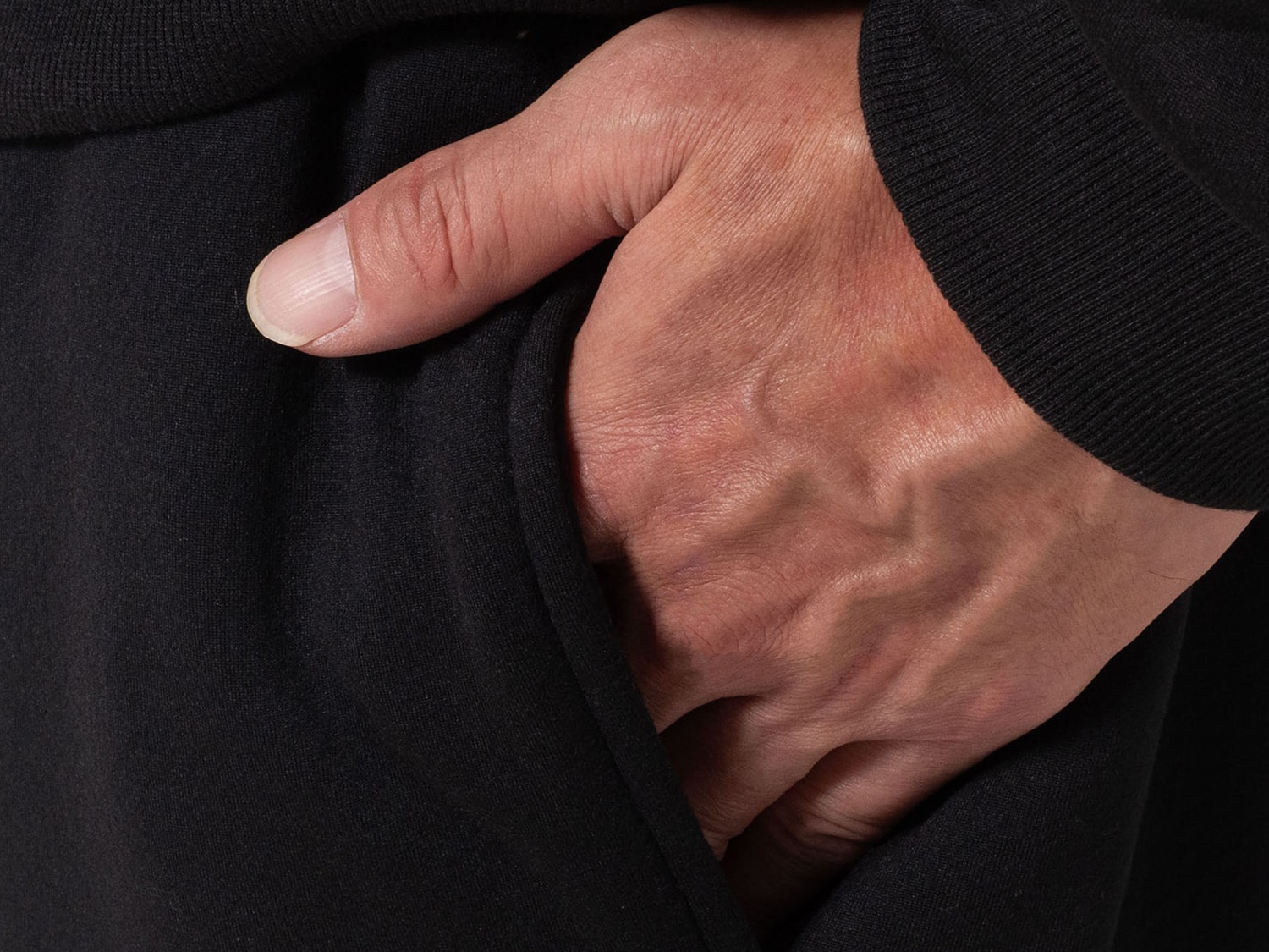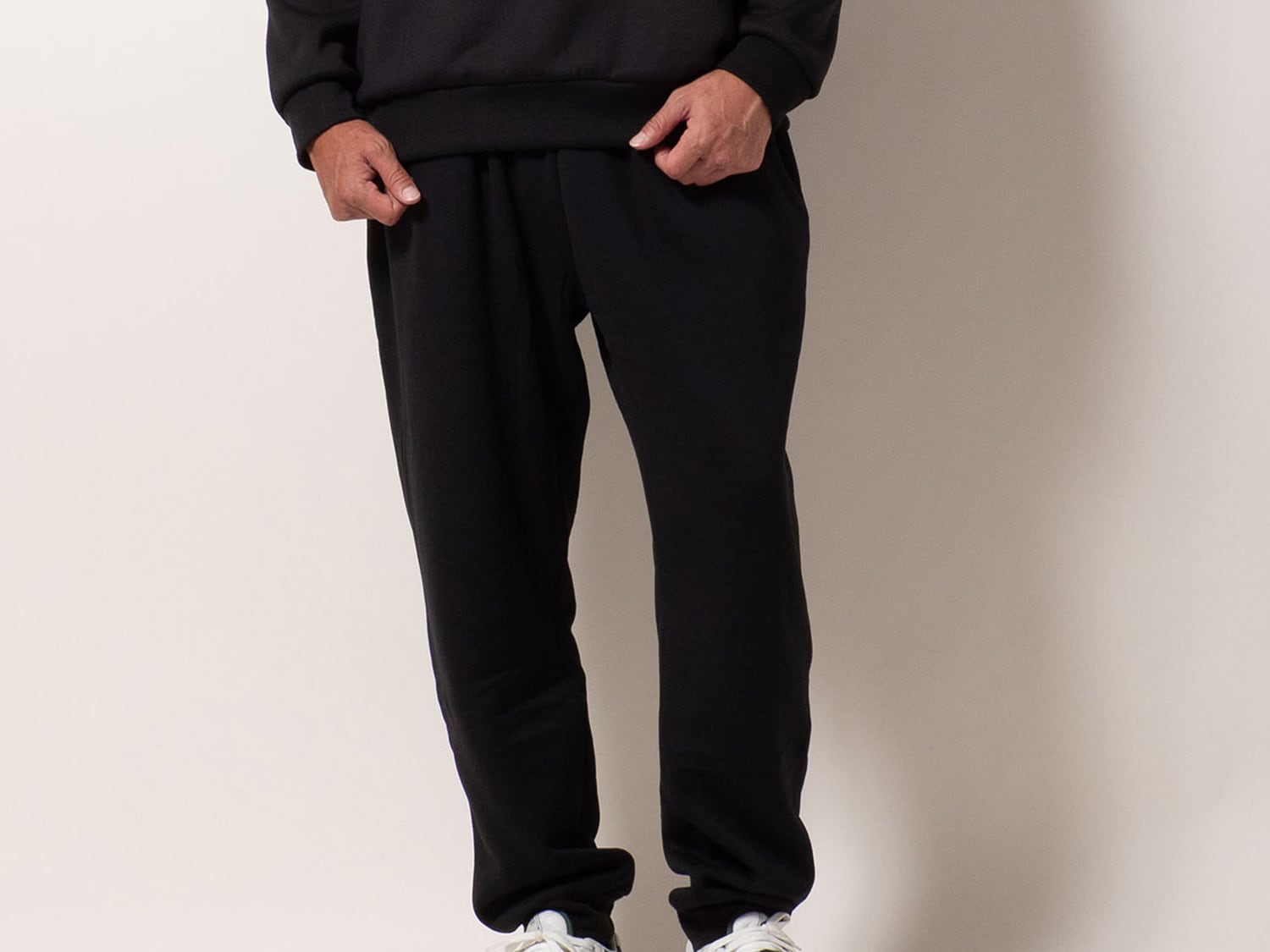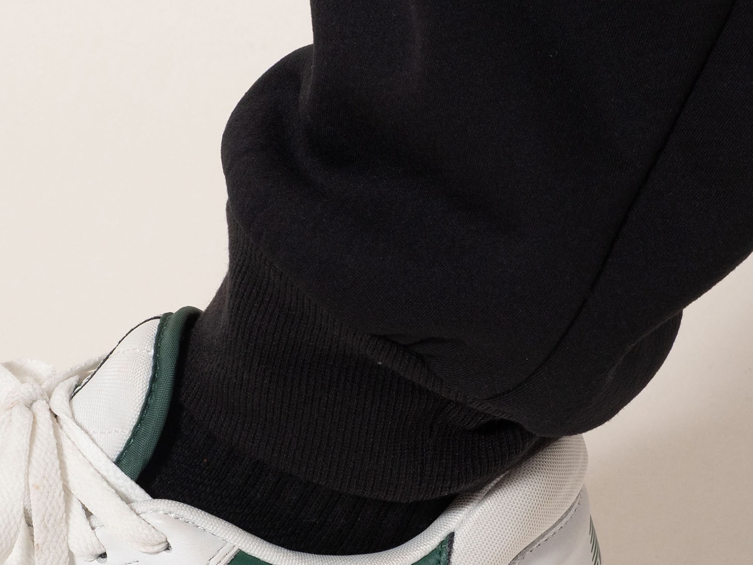パンツはウエストにゴムが入っているため、動きやすく、サイズ調節が可能です。裾リブ仕様なので足元ももたつかず、スニーカーとの相性も抜群です。