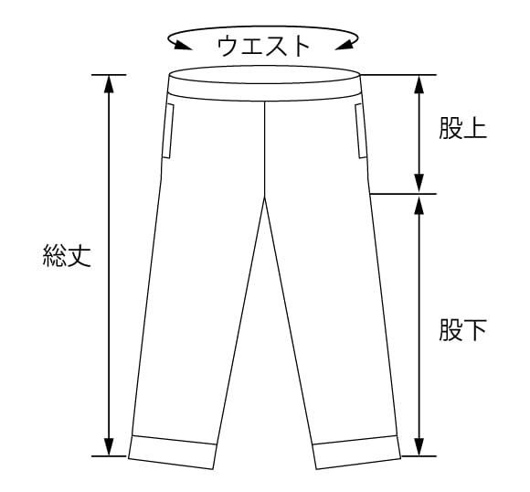 サイズ(約) M L LL ウエスト 76~84cm 84~94cm 94~104cm 股上 29cm 30cm 31cm 股下 70cm 72cm 74cm 総丈 99cm 102cm 105cm ※サイズは目安としてご参照ください。