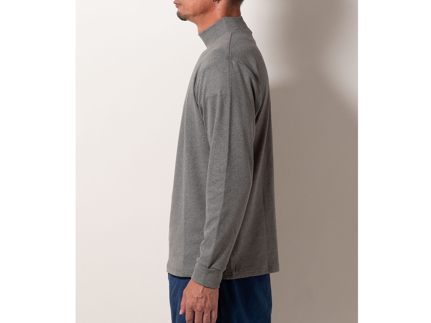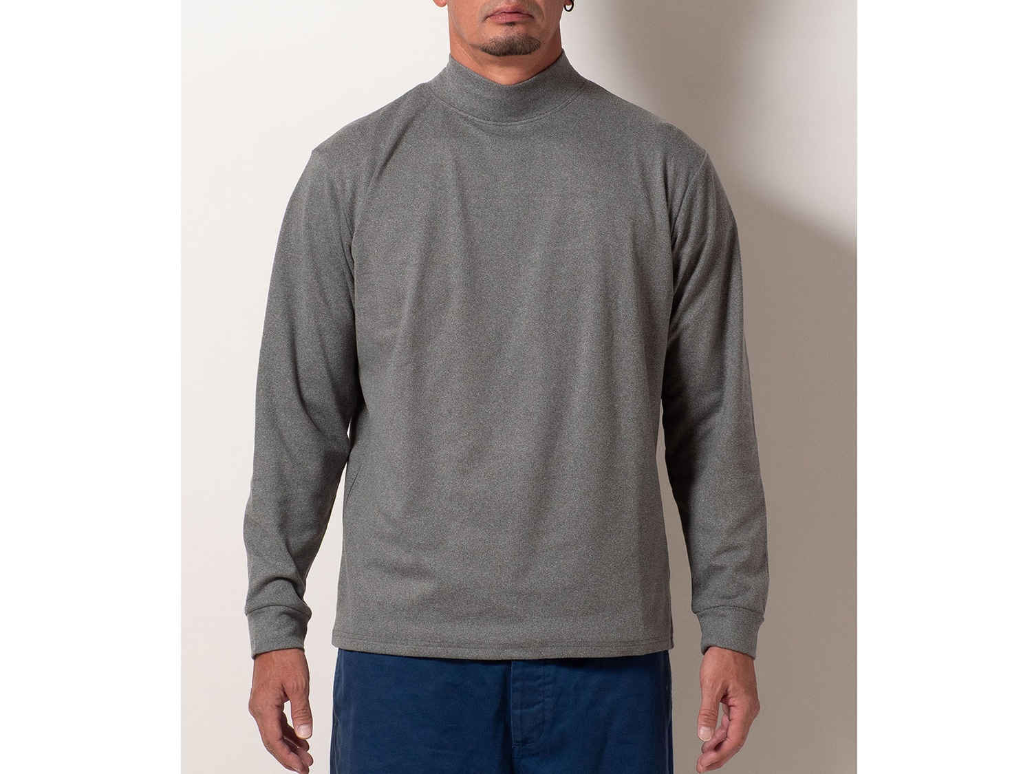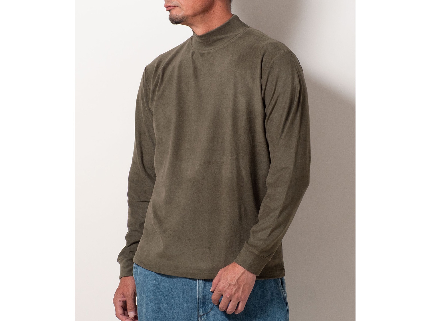 シンプルなモックネックで、インナーとしての着回しも抜群。