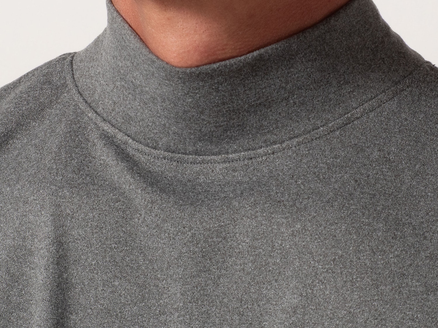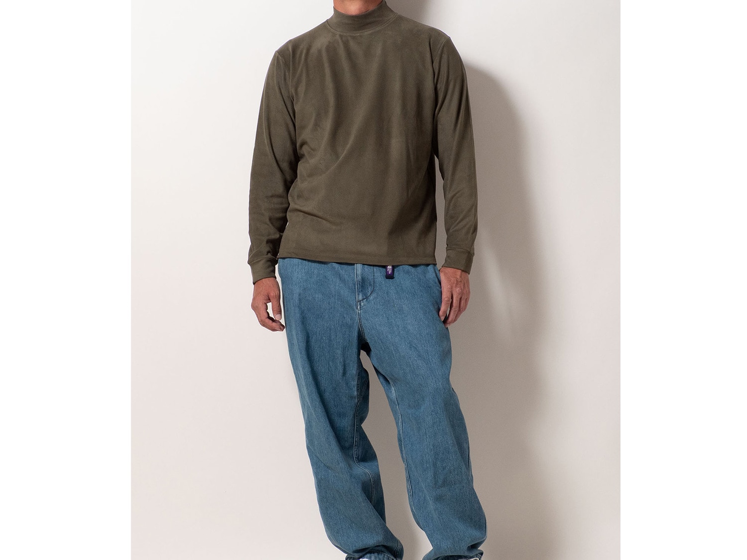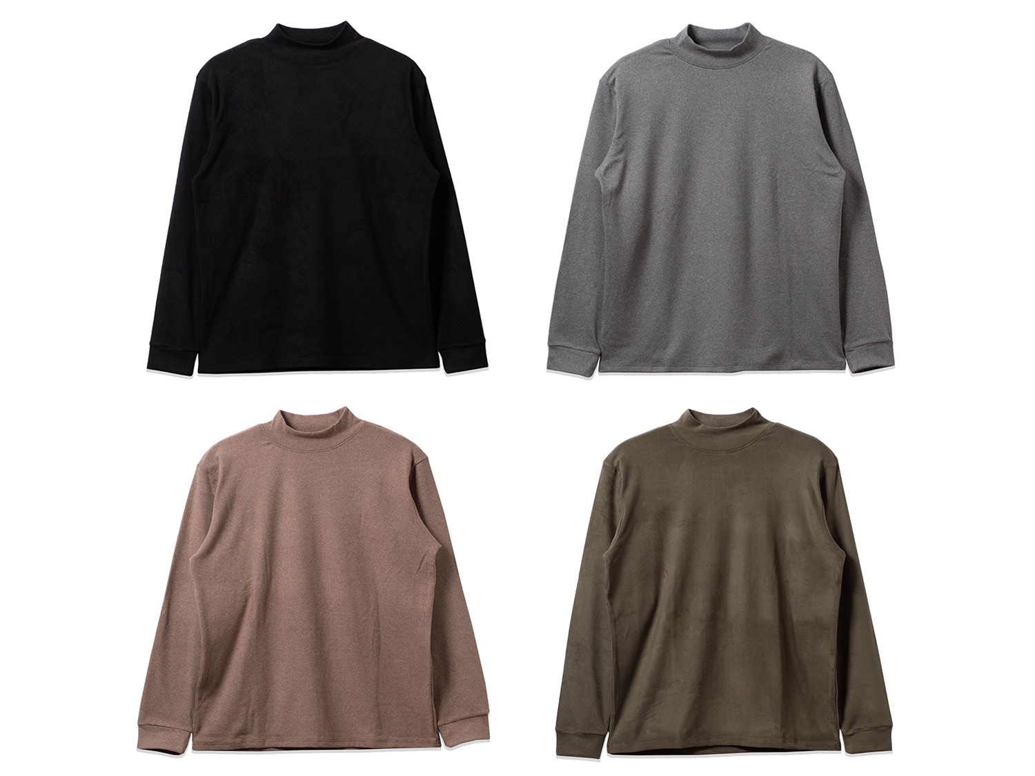 シンプルなモックネックで、インナーとしての着回しも抜群。