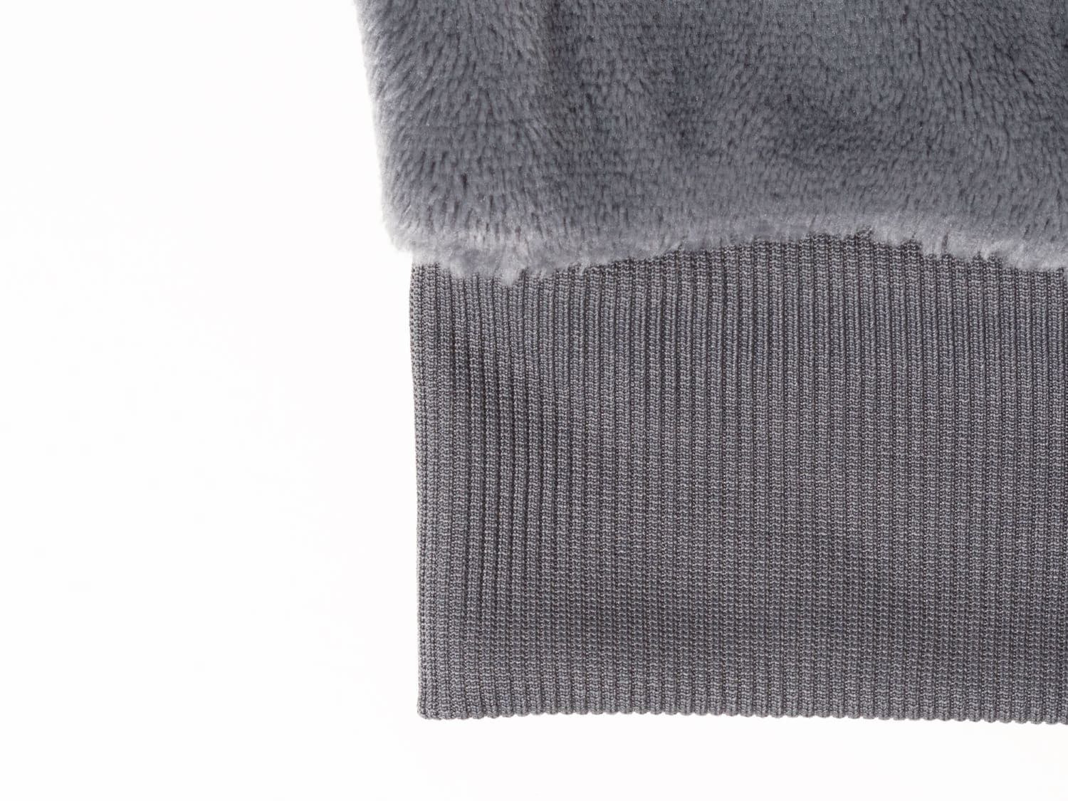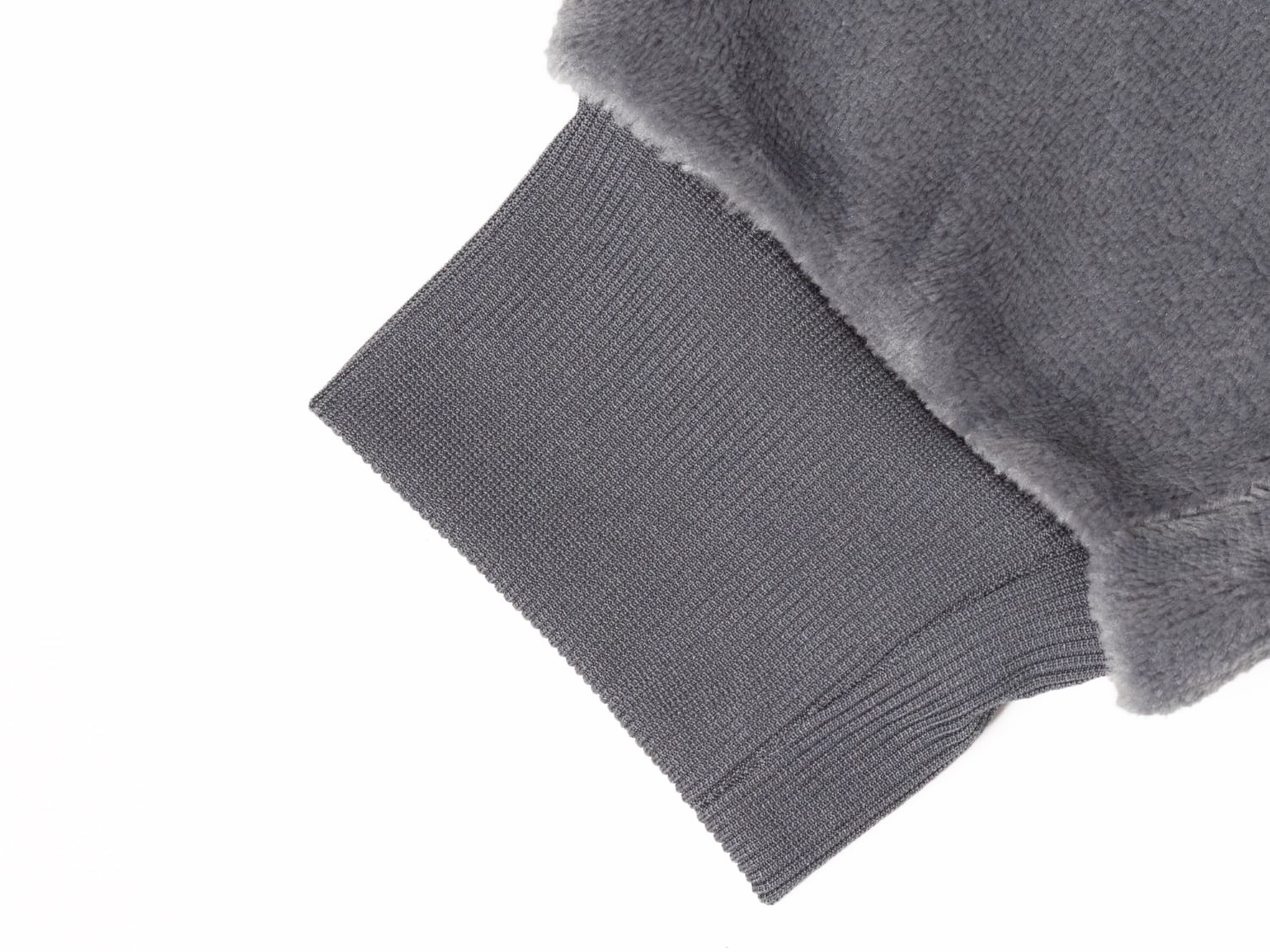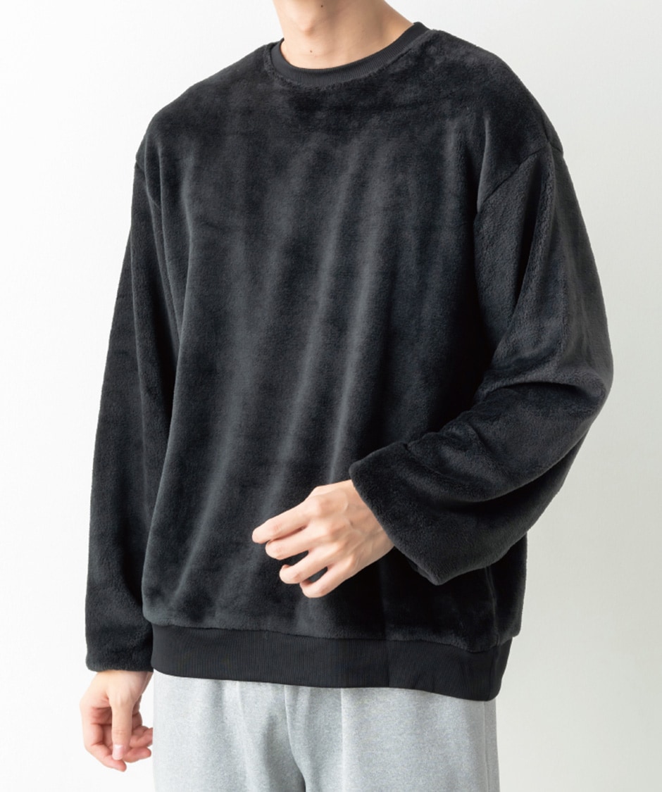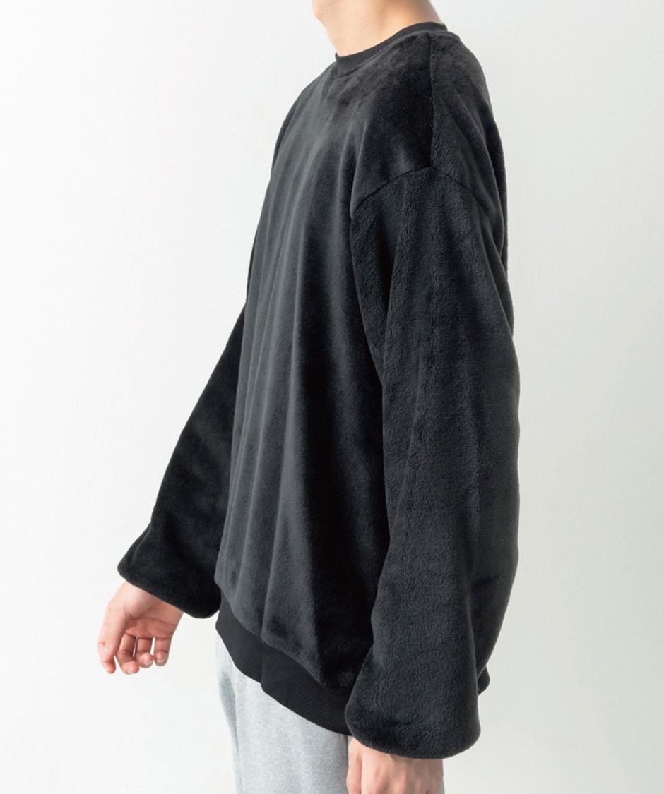 フリース素材の両面をシルキー加工し滑らかな肌触りに加工しています。毛足を長くし、より暖かい生地にしました。ベーシックなデザインなので、コーディネートにも便利です。