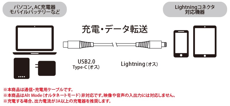 | コネクター形状 | Type-C(オス)-Lightning(オス) |