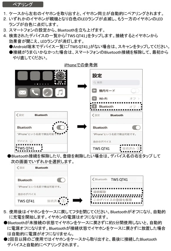 商品仕様 型番 GRFD-TWS QT41 商品名 完全ワイヤレスイヤホン カラー 2色:ブラック(BK)、ミルクホワイト(MWH) JANコード BK:4582794735413