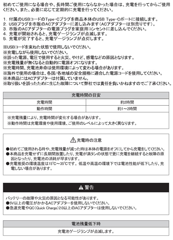 | 充電時間 | 約2時間 | |