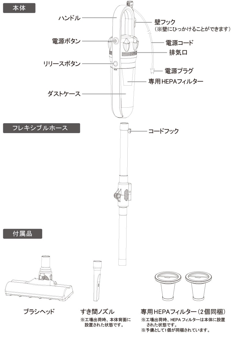 付属品 専用HEPAフィルター:2個 すき間ノズル:1個