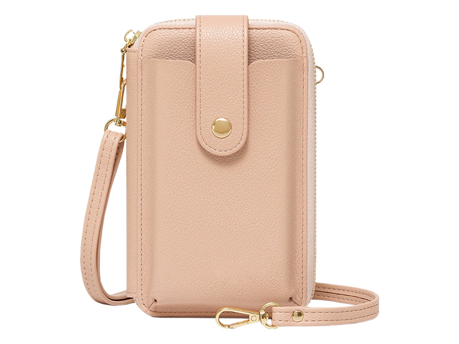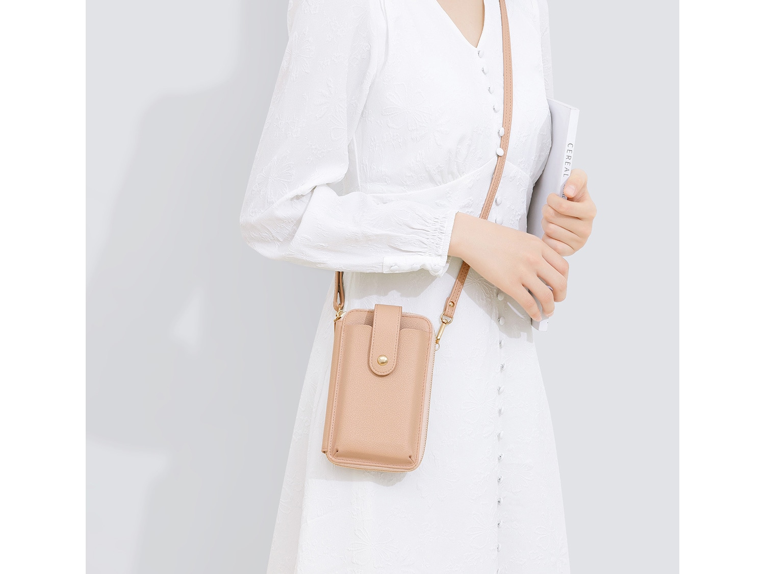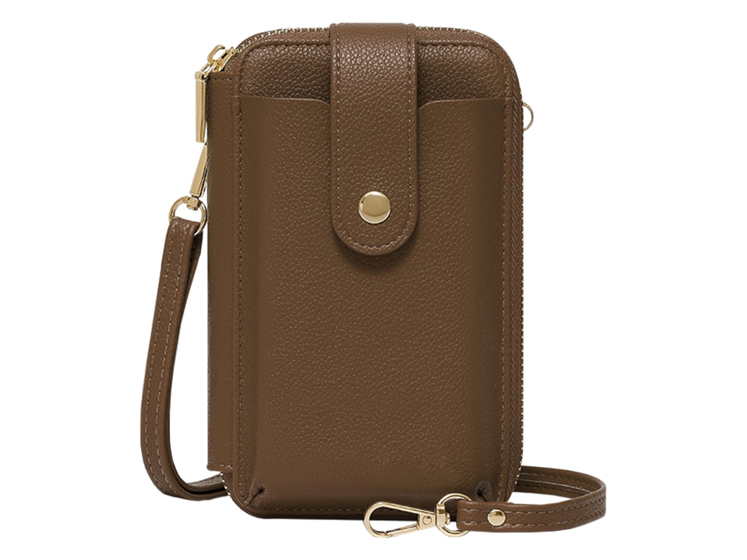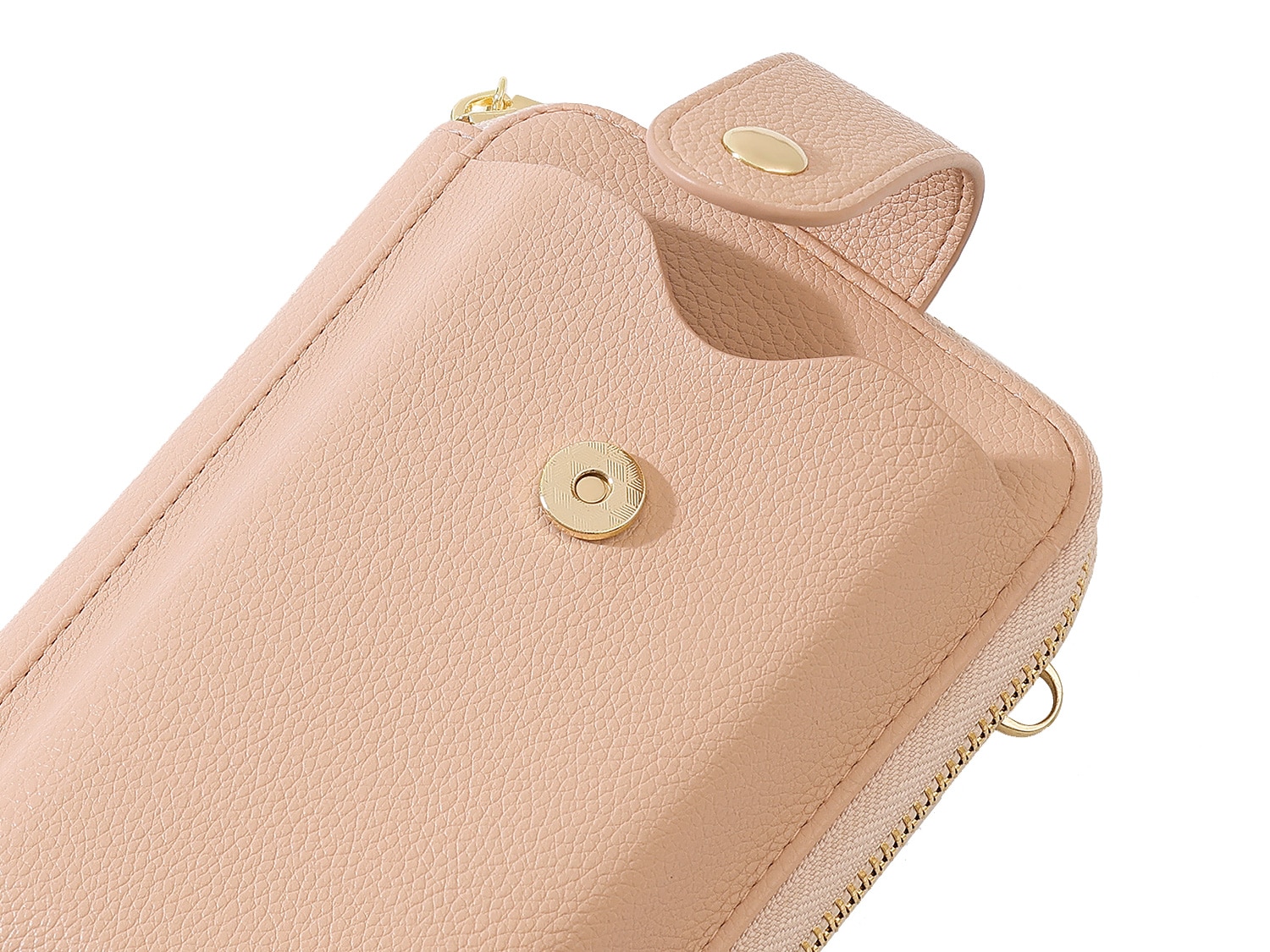 ちょっとしたお出かけに便利な財布機能がついたスマホポシェット。スマホやカード、小銭、お札、鍵など、最小限の荷物を持ち歩きたい時に便利です。旅行など荷物の多いときに、メインバッグとの2個持ちもおすすめです。取り外し可能なショルダーストラップ付きで、肩掛けや斜め掛けにすることができます。シンプルなデザインで、様々なコーデに合わることができます。
