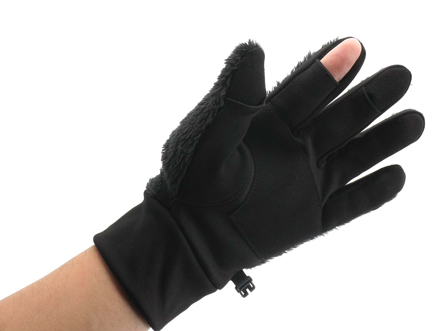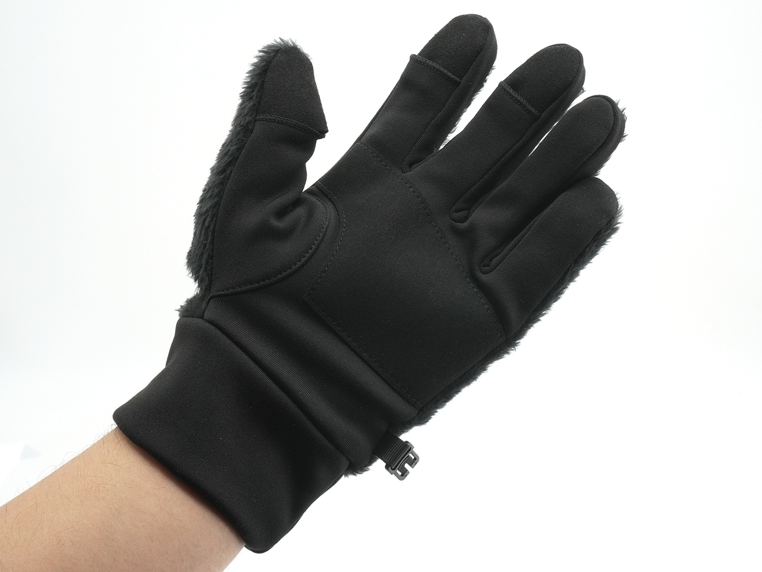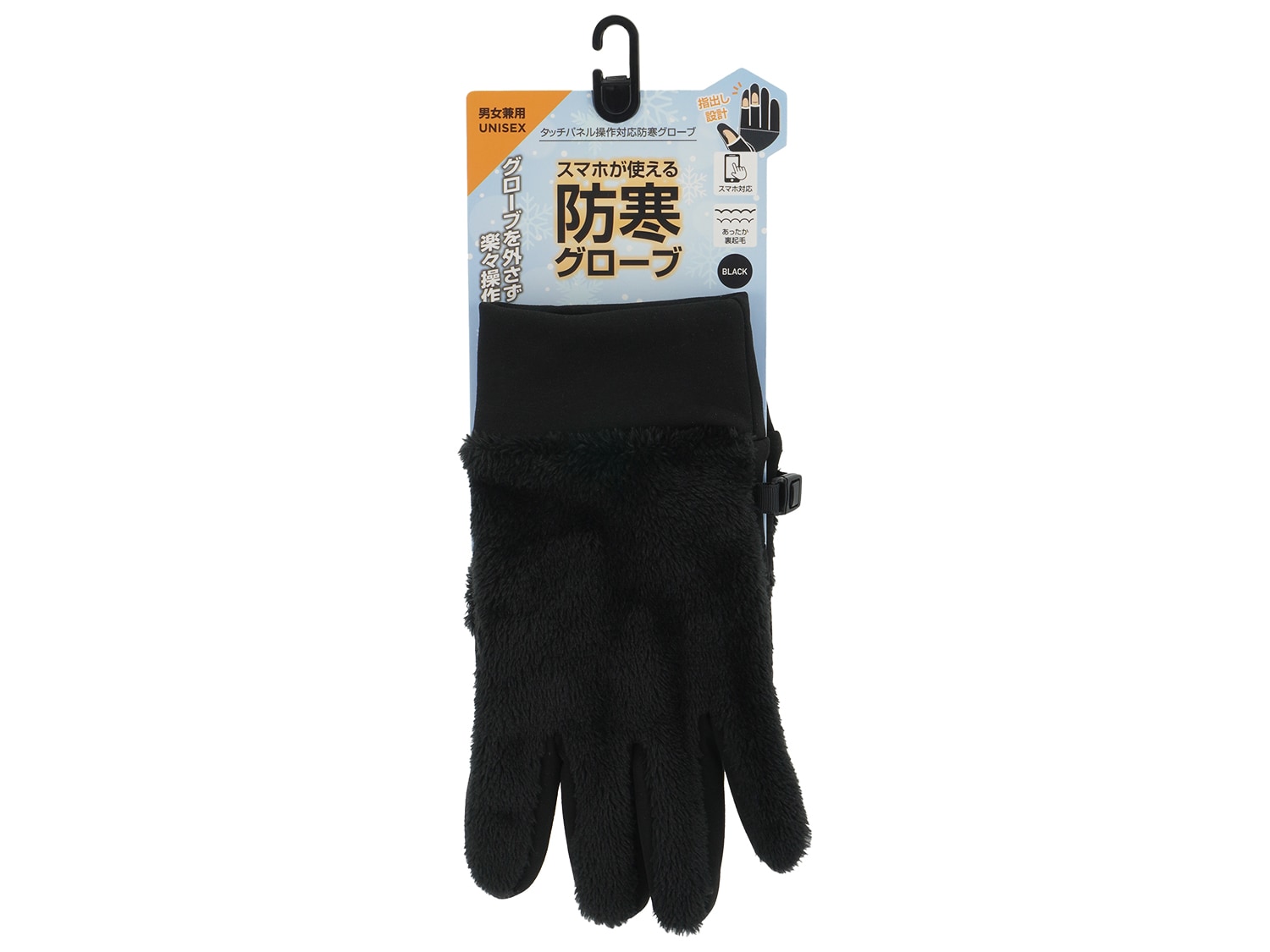 指出し設計(親指、人差し指、中指)で、手袋を外さなくてもスマホ・タブレット操作可能です。裏地起毛でつけ心地が良く、柔らかな肌触りでフィット感抜群です。紛失防止のパーツ付きです。