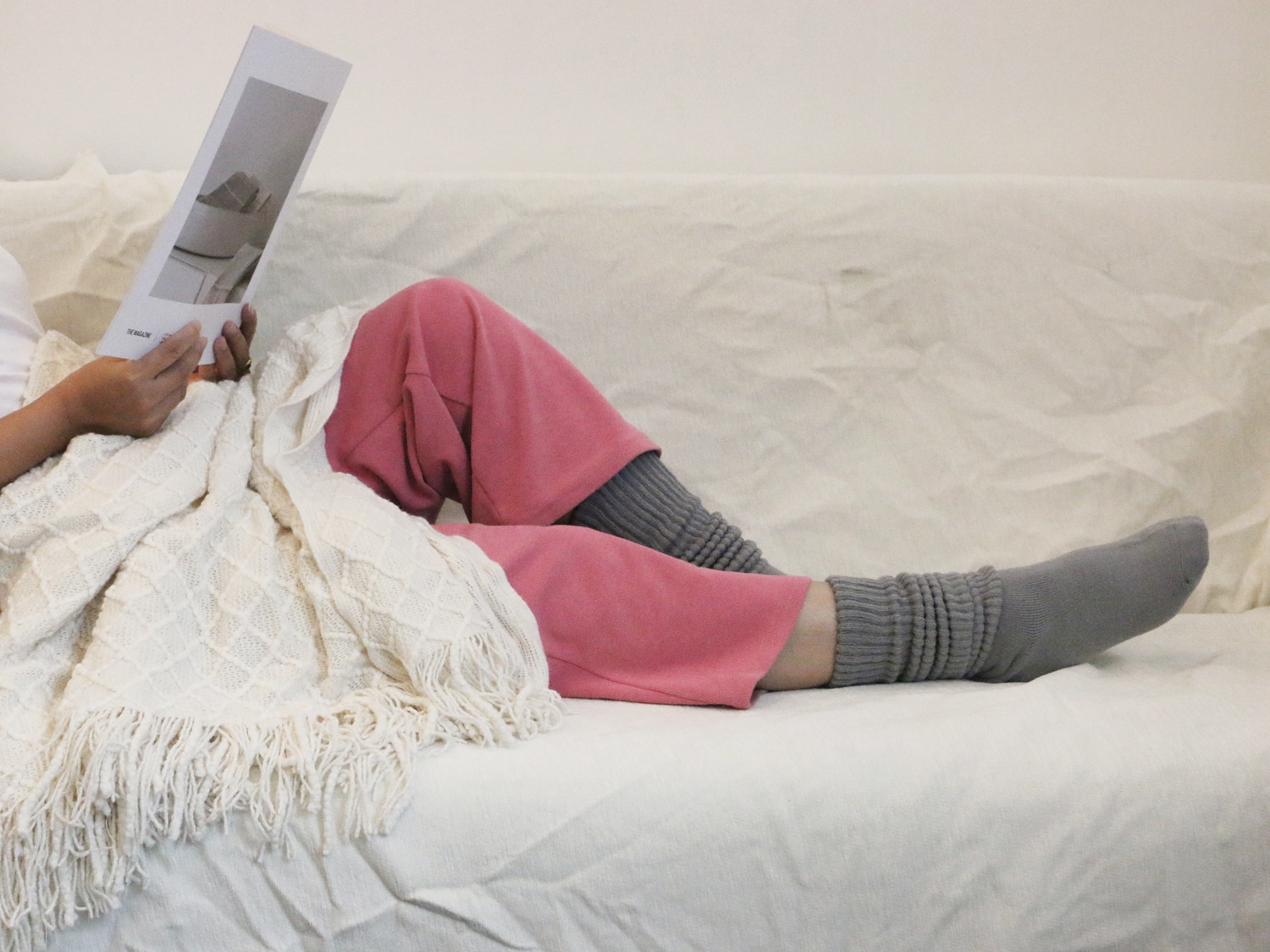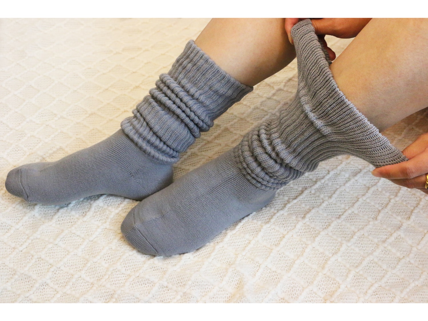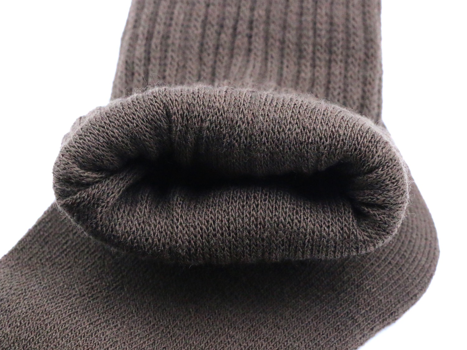 履くだけで足首やふくらはぎをしっかりと温めるソックスです。足首より下はしっかりと厚みのある仕様で、冷え対策。室内で足元が冷えるときなど、寒い季節に活躍します。空気を包み込むようにふんわりと編み込まれているため、柔らかな履き心地でありながら、ムレにくい快適さを実現しました。高い伸縮性を持つ素材を使用しているので、型崩れしにくく長く愛用いただけます。