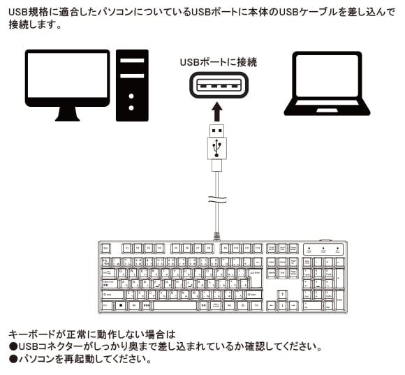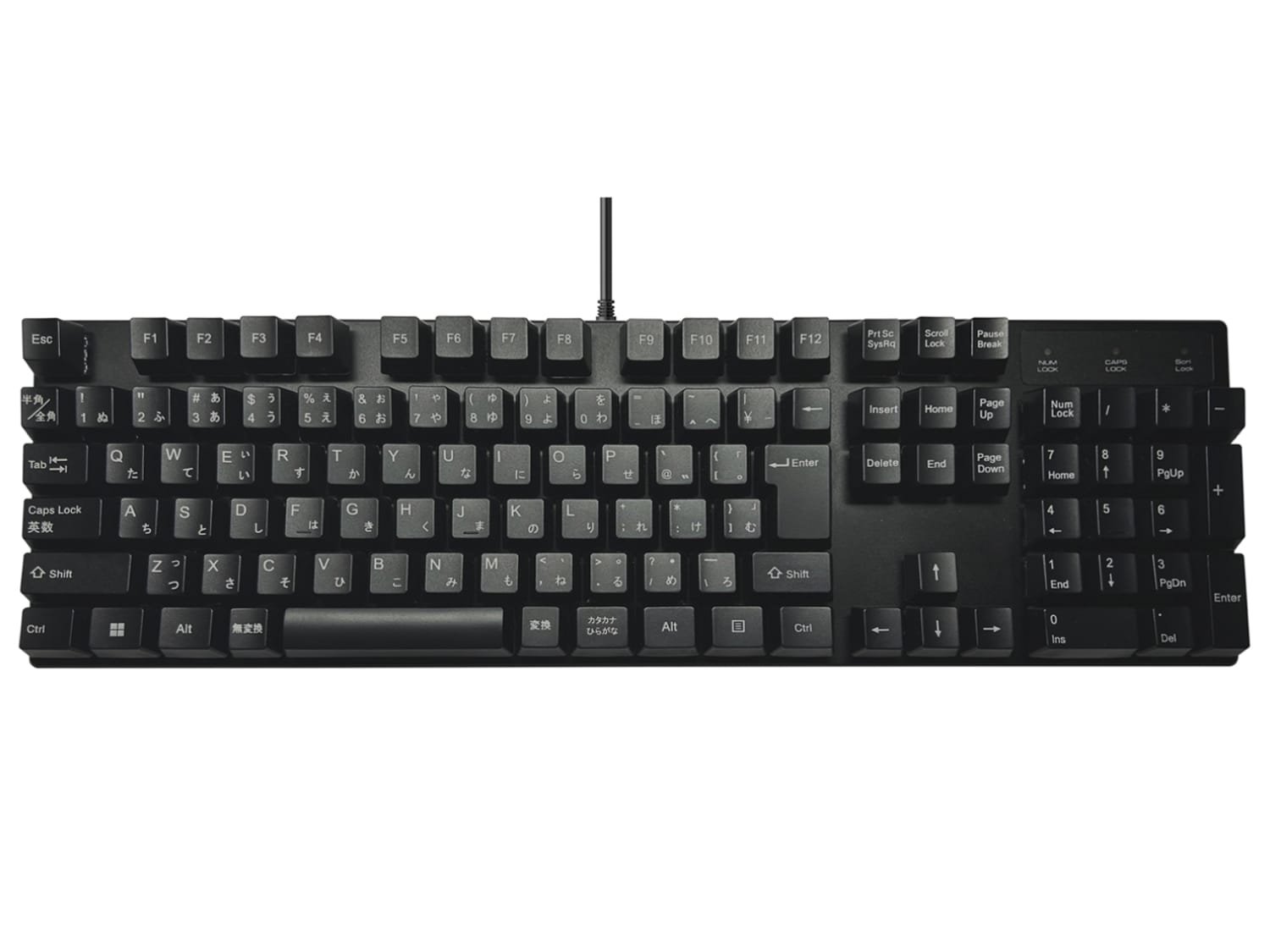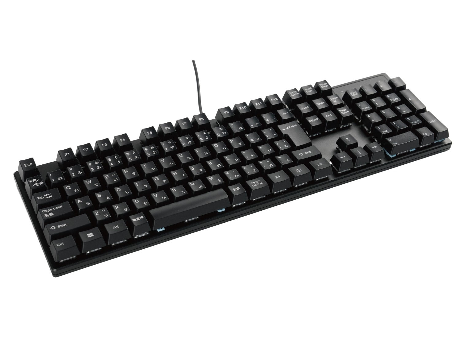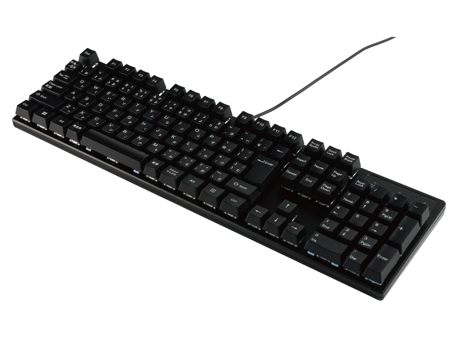 日本語108キー配列を採用した、テンキー付きのフルサイズのキーボード。しっかりとした打鍵感を得られ、より快適にタイピングができるメカニカルタイプです。各キーが独立しているので耐久性も高く、ゲームはもちろんデータ入力にも最適です。