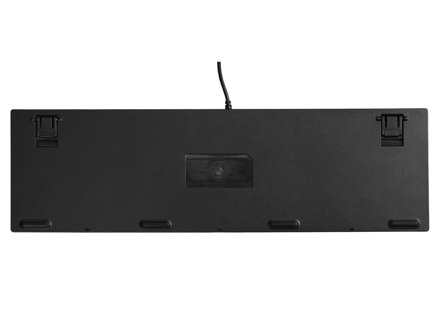 スタンドを起こすとキーボードの角度を調整することができる、角度調整スタンド付き。長時間のゲームやデスクワーク時にも手首の負担が軽減されます。使用しないときには背面に折り畳んで収納することができます。
