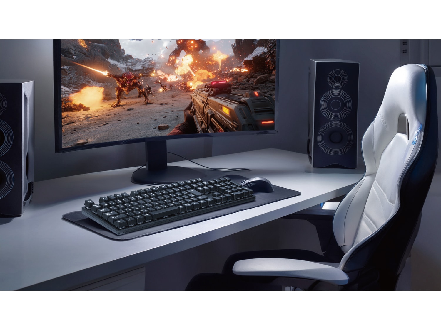 キーの沈み込みが深いため、押した感覚がはっきりと伝わり、確実な入力がしやすい設計になっています。軽く触れただけで反応してしまう誤入力を防ぎつつ、指の動きに合わせて自然なリズムでタイピングできるので、ゲームやビジネスシーンなど、正確さと打ちやすさを両立したい方に最適です。