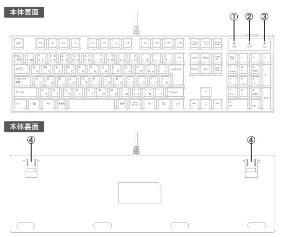 全てのキーが同時入力できる、全キーロールオーバー対応。