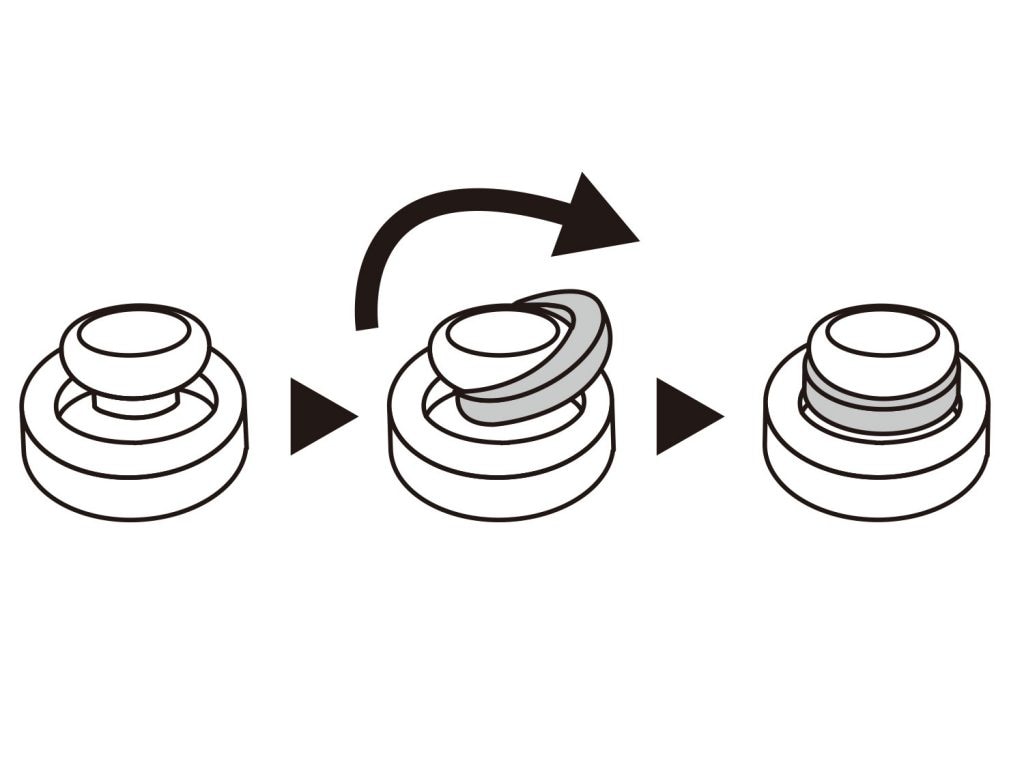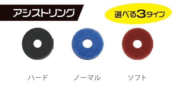 スティックの傾きを抑制することで、細かな操作が可能になるアシストリング。[ハード/ノーマル/ソフト]の選べる3タイプで、お好みに合わせて使い分けることができます。
