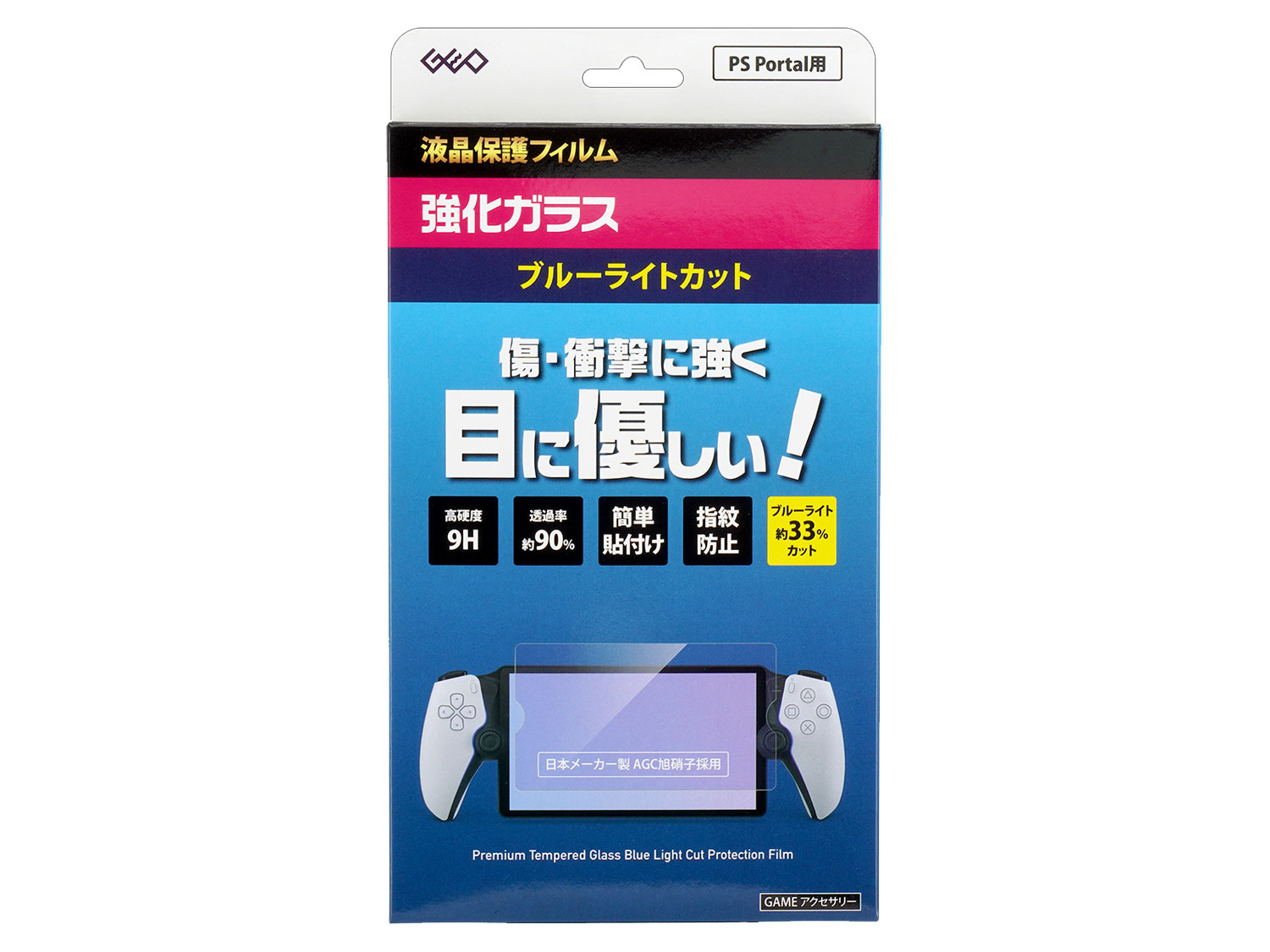 傷・衝撃に強く、目に優しいPS Portal用液晶保護フィルム。安心の日本メーカー製強化ガラスを採用。ブルーライトを約33%カットし、目に優しく、負担を軽減し指紋や汚れがつきづらく、スムーズな指触り。液晶画面も目もしっかりケアされたい方へオススメです。