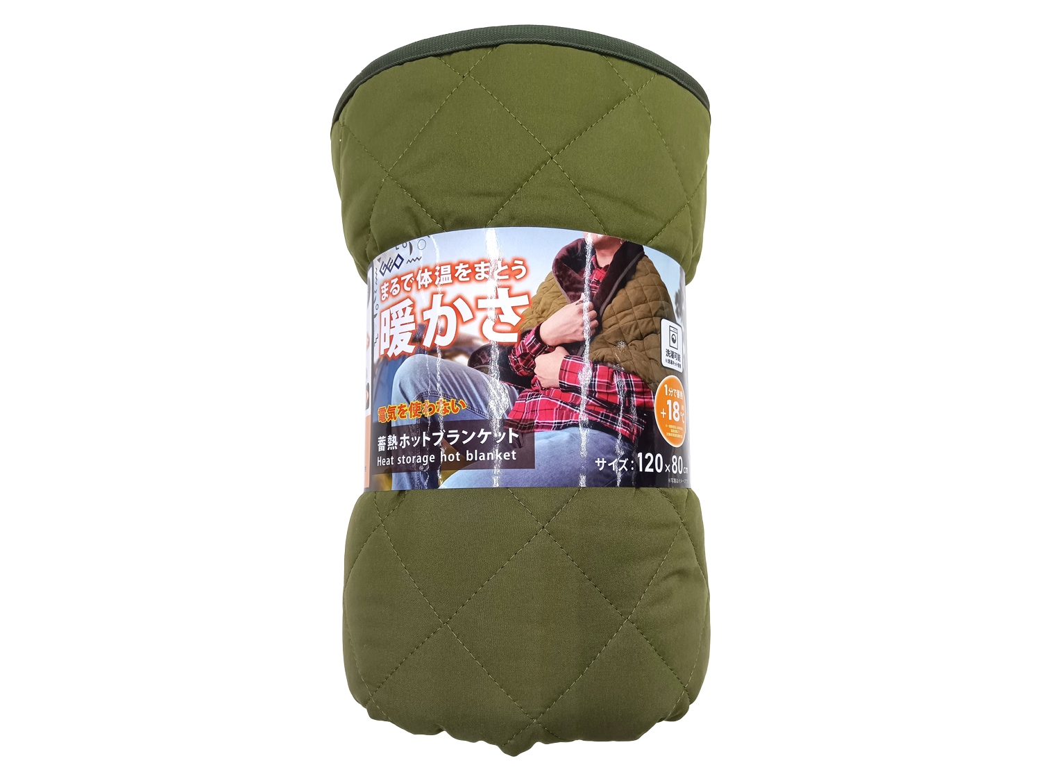 型番 GRCN-BL HB F 商品名 蓄熱ホットブランケット カラー 1色:カーキ(KH) JANコード 4582794735512 サイズ 約120cm×80cm 組成 表側:ポリエステル 100%