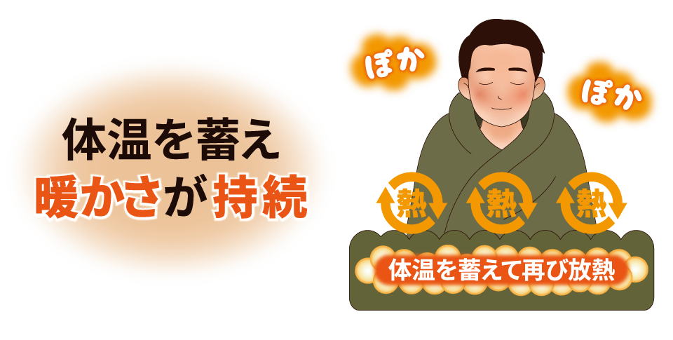 自分の体温を使って暖めるので、自然で優しい使い心地。