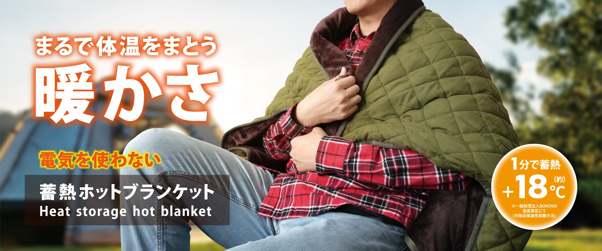 電気を使わずに、1分でプラス18℃まで暖めることができる(※)、蓄熱ホットブランケットです。室内ではもちろん、アウトドアや車内など様々なシーンで活躍します。洗濯機で丸洗い可能なので、いつでも清潔にご使用いただけます。