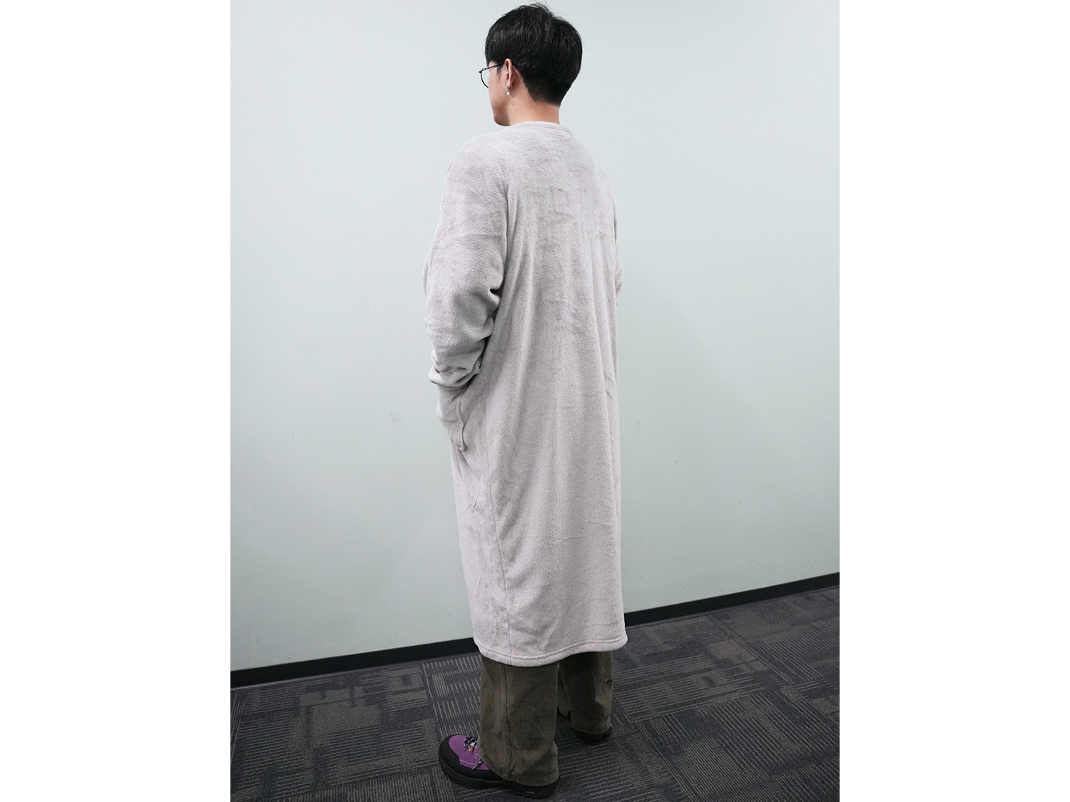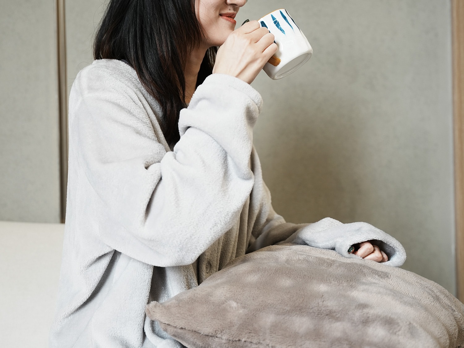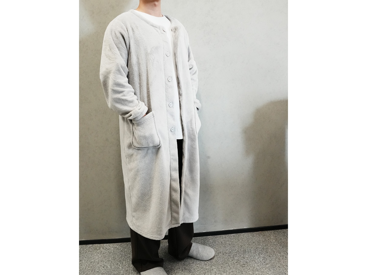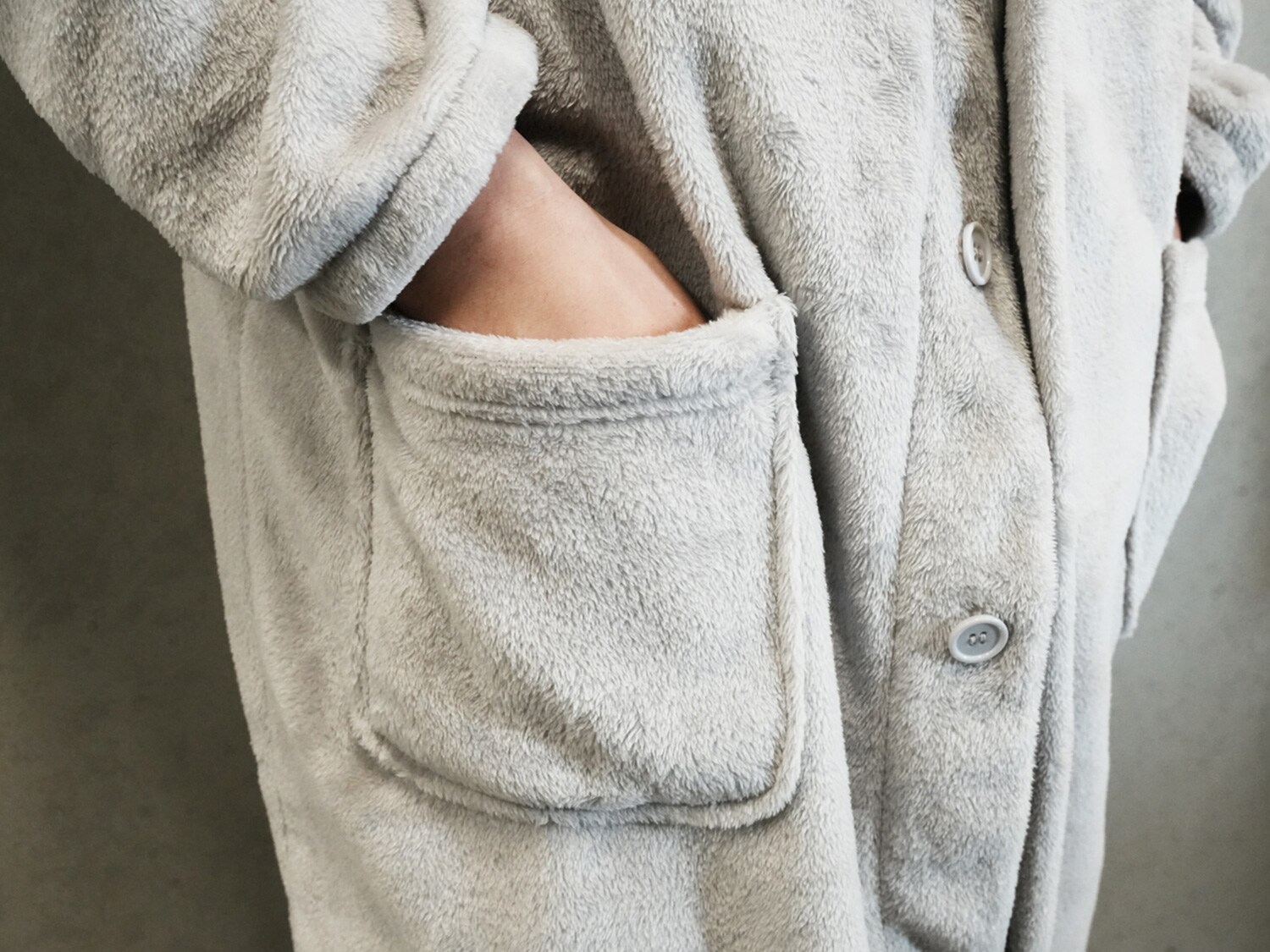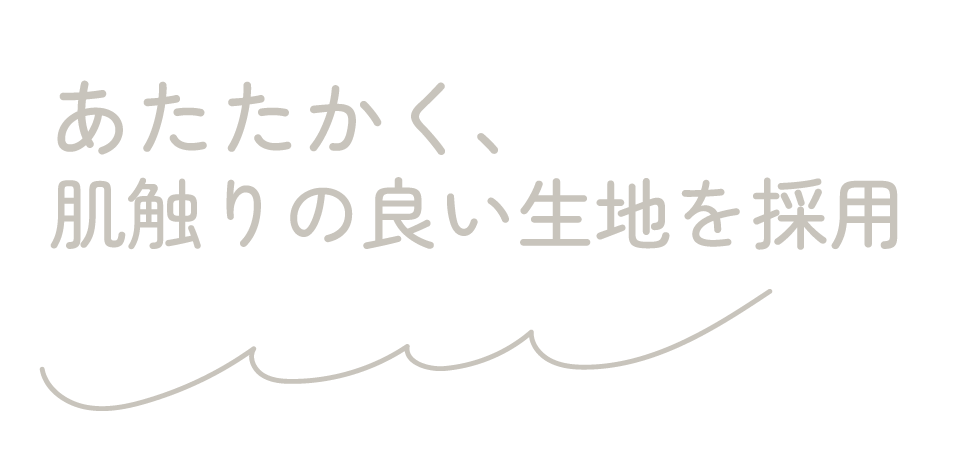 保温性と、吸湿性に優れたポリエステルとレーヨンの合成素材を採用しました。柔らかい毛布のような生地で、おうちでのリラックス時間にぬくもりをプラスしてくれます。