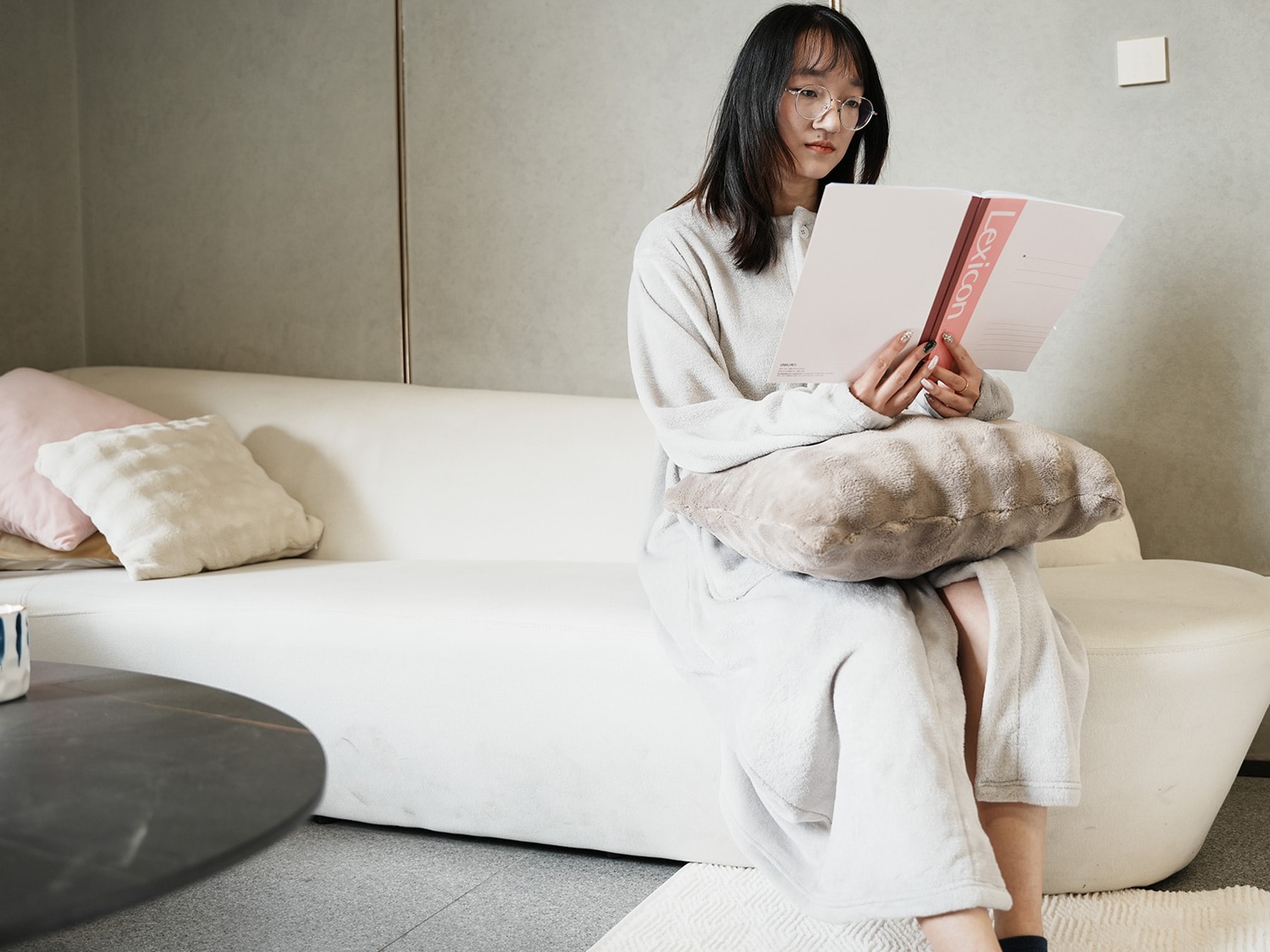 まるで毛布にくるまれているような感覚で、寒い冬にぽかぽかとお部屋でのゲームや読書など、リラックスしておうち時間が過ごせます。