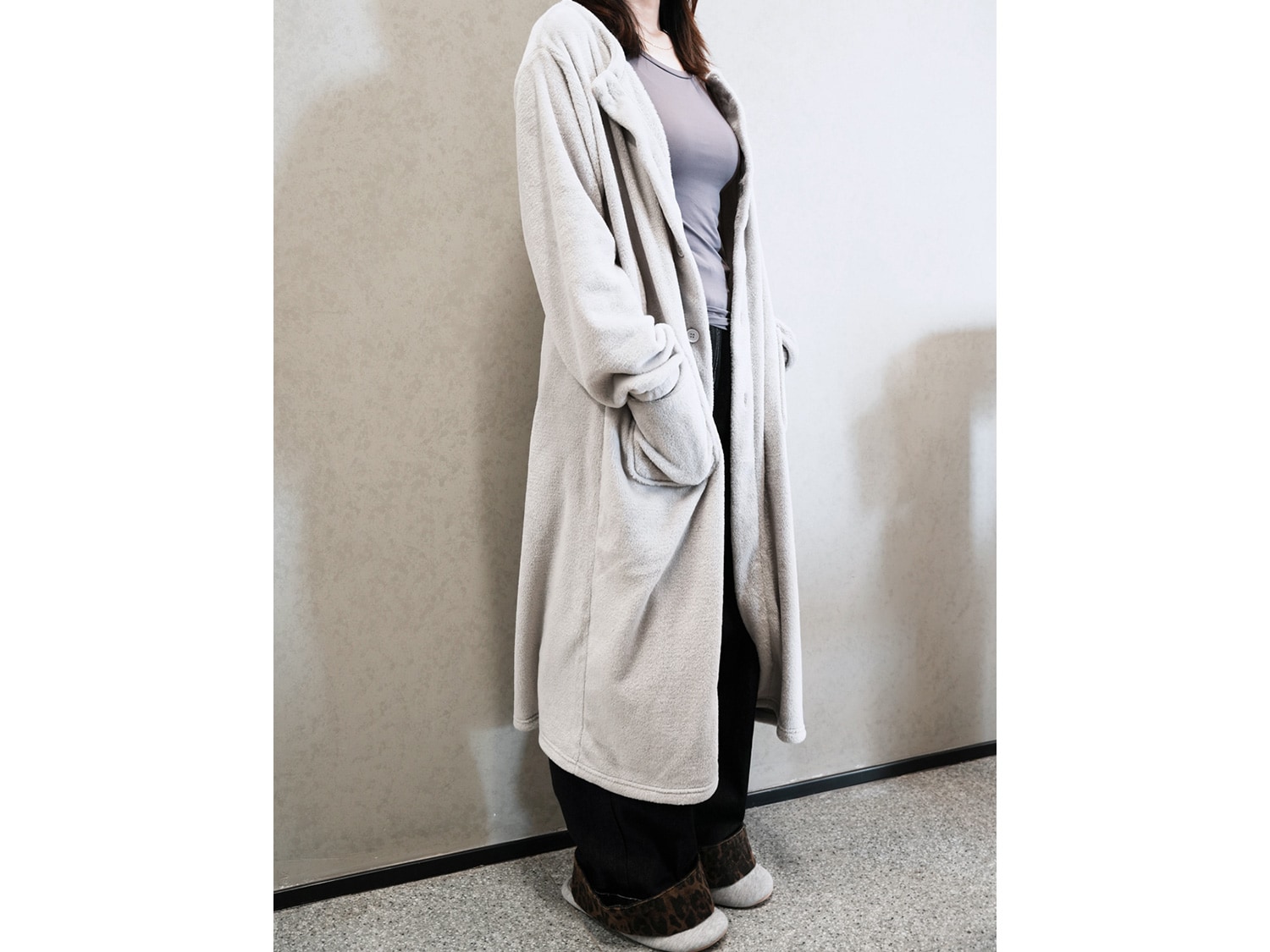袖付きデザインのため動きやすく、着たままくつろぐことができる。