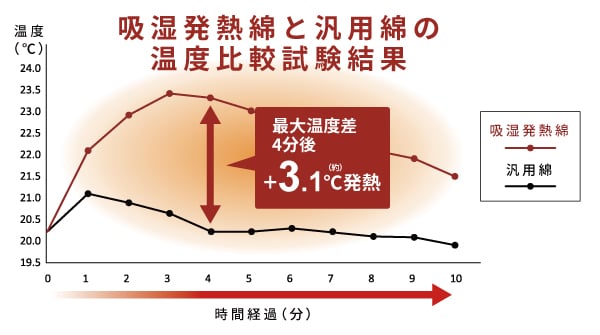※該当商品の「吸湿発熱性能」を実証するための試験結果です。