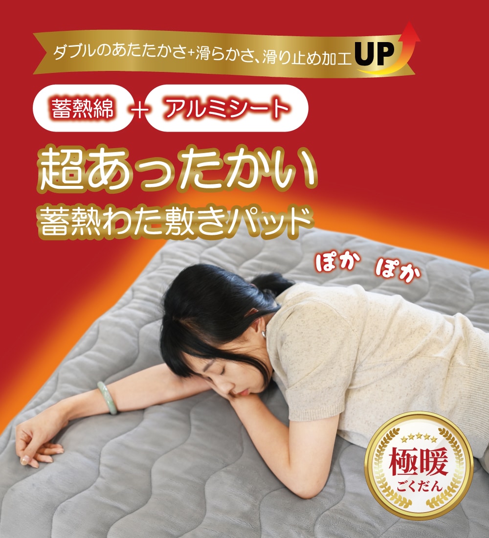 なめらかなミクルファイバー繊維に、アルミシート層・吸湿発熱綿・蓄熱綿・裏生地と5層構造で暖かさを詰め込んだ敷パッドです。