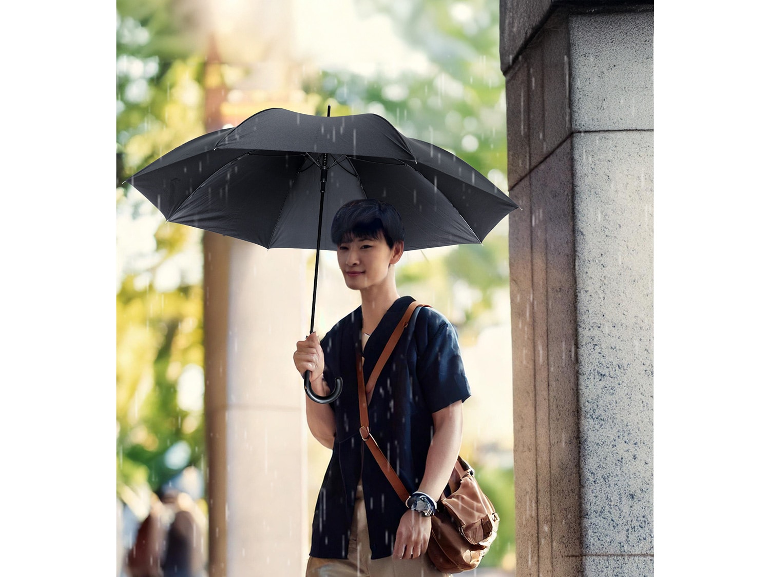 風に強い耐風仕様のジャンプ傘です。ワンタッチ式で片手でさっと開けられるので、荷物が多く手がふさがっているときに便利です。親骨の長さは約70cmとなっています。
