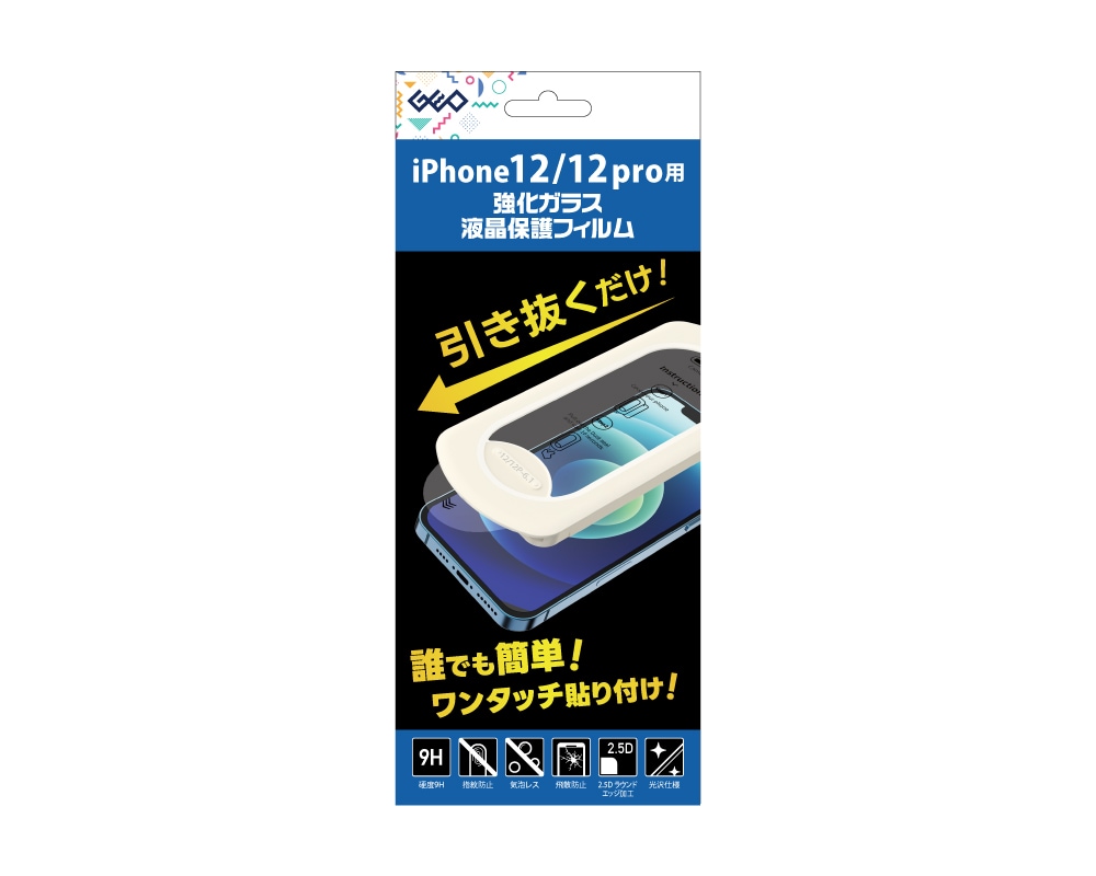 12/12Pro/11/XR/SE3/SE2/8/7厚さ 約0.33mm 硬度 9H 透過率 約91% 付属品 アルコールウェットシート、クリーニングクロス、粘着シート、簡単取付キット 取扱説明書 - 保証期間 - 発売日 2025年09月25日 - 使用方法