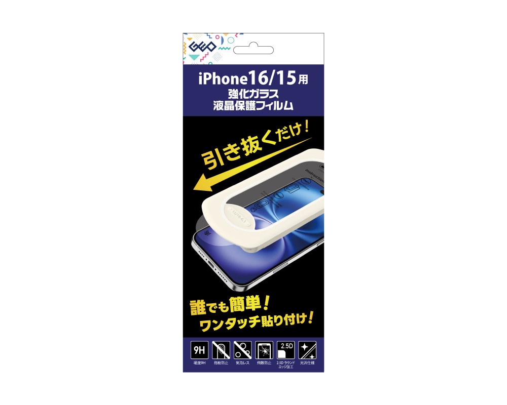 型番 GRAF-PF-16K/GRAF-PF-14K/GRAF-PF-12K/GRAF-PF-11K/GRAF-PF-SE3K 商品名 iPhone用 強化ガラス液晶保護フィルム キット付き JANコード iPhone 16/15用:4582794735659