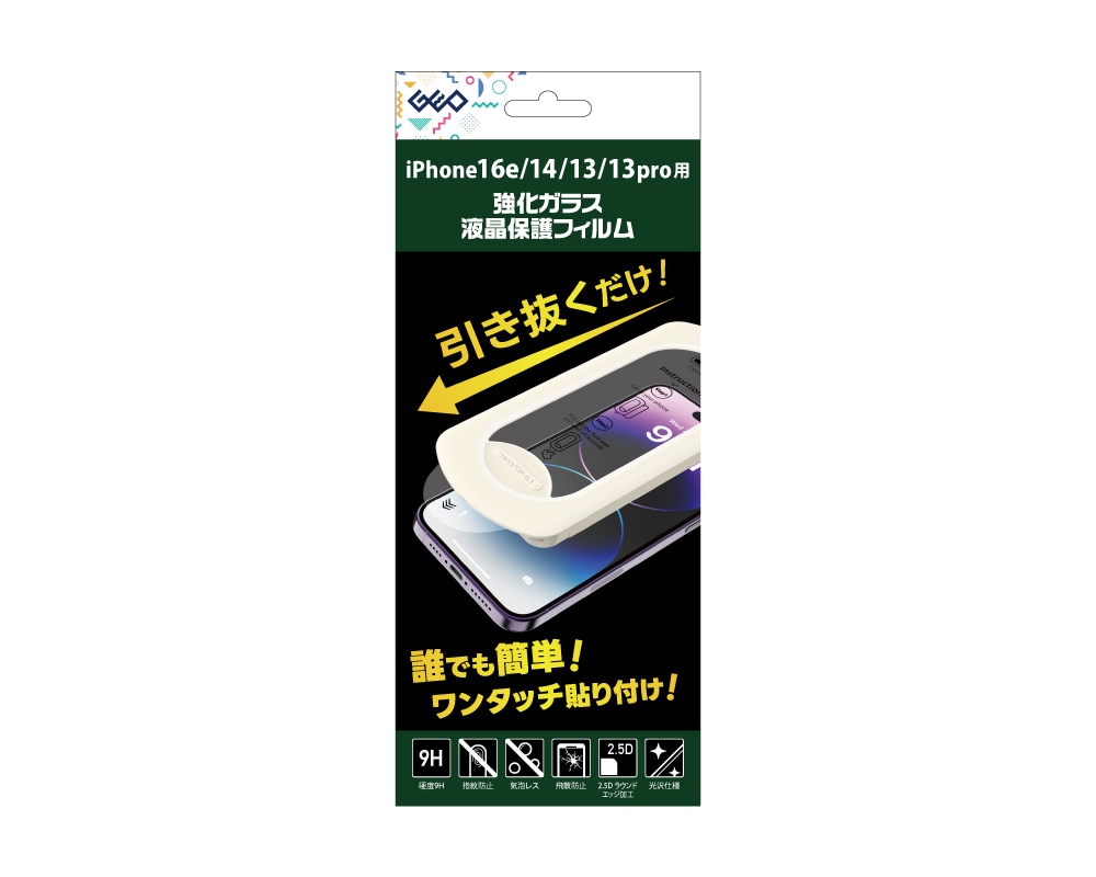 型番 GRAF-PF-16K/GRAF-PF-16e/14K/GRAF-PF-12K/GRAF-PF-11K/GRAF-PF-SE3K 商品名 iPhone用 強化ガラス液晶保護フィルム キット付き JANコード iPhone 16/15用:4582794735659