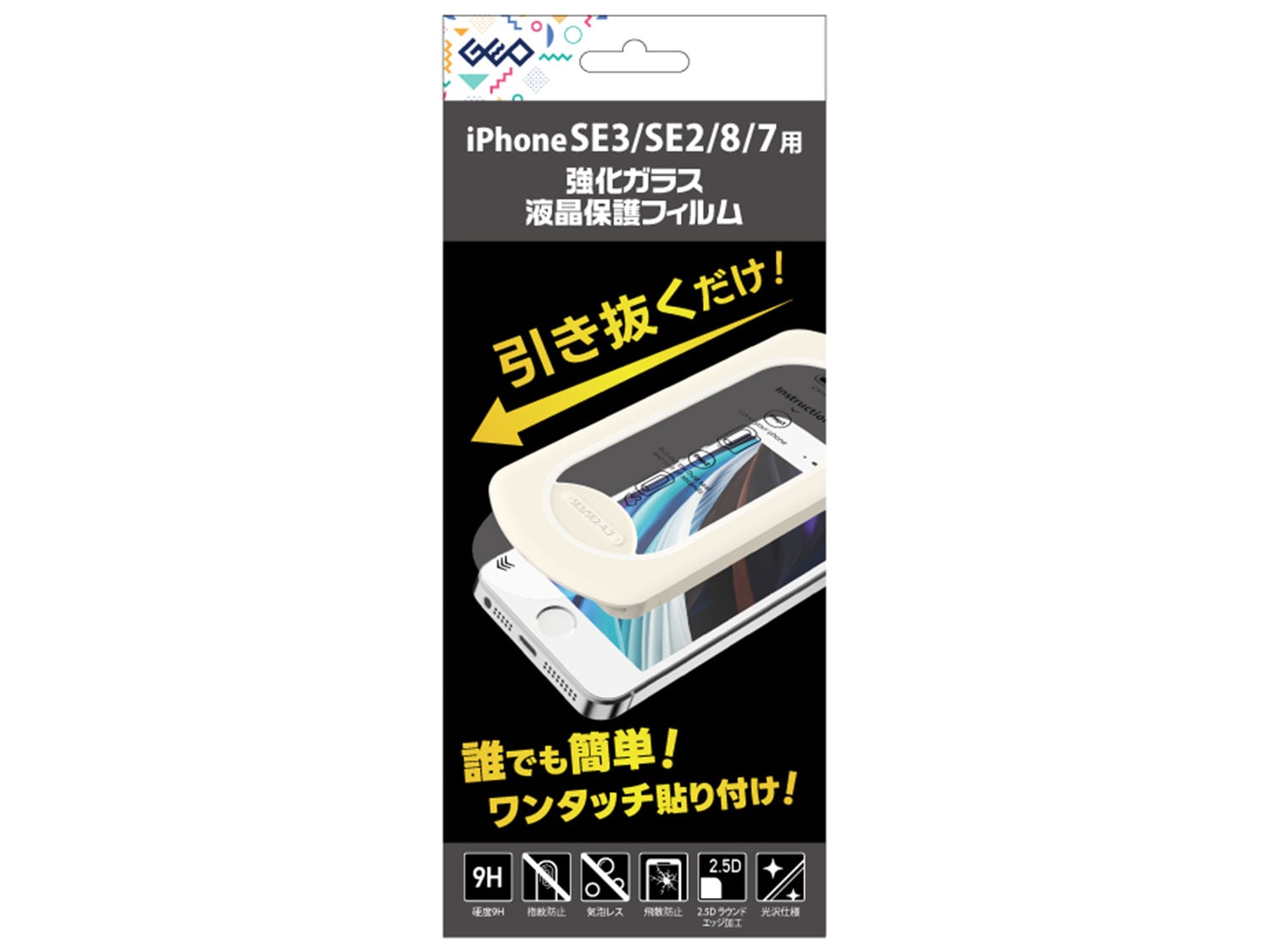 iPhone SE3/SE2/8/7用:4582794735611対応機種 iPhone 17/16/16Pro/16e/15/14/13/13Pro/12/12Pro/11/XR/SE3/SE2/8/7 厚さ 約0.33mm 硬度 9H 透過率 [GRAF-PFG-17/16pK]:約92%